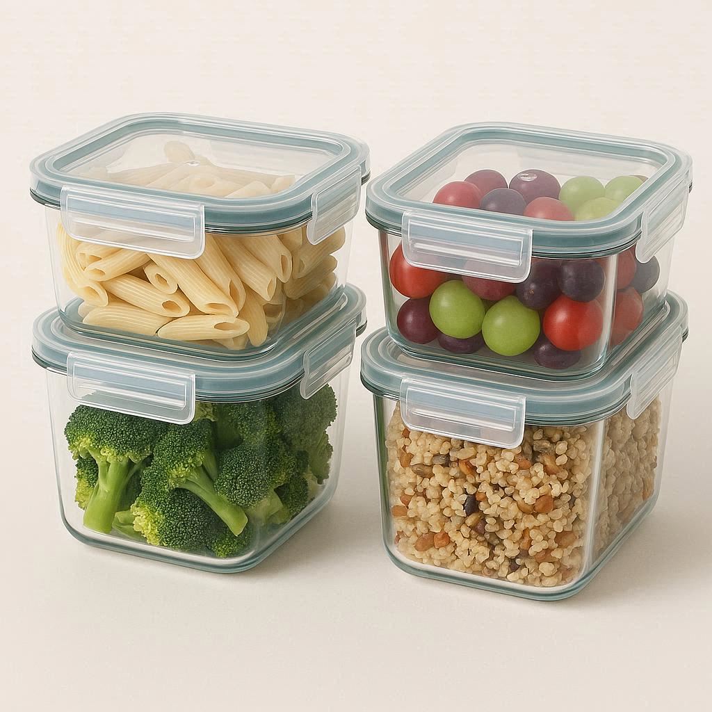 Set of 4 airtight containers with silicone seals to lock in freshness. Transparent lids allow easy visibility, while the durable plastic withstands daily use. Ideal for meal prep and reducing food waste.